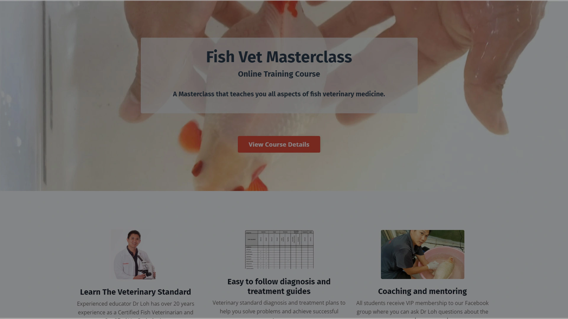 The Fish Vet Masterclass is designed for both beginners and professionals by one of the most highly trained and accredited fish veterinarians on the planet